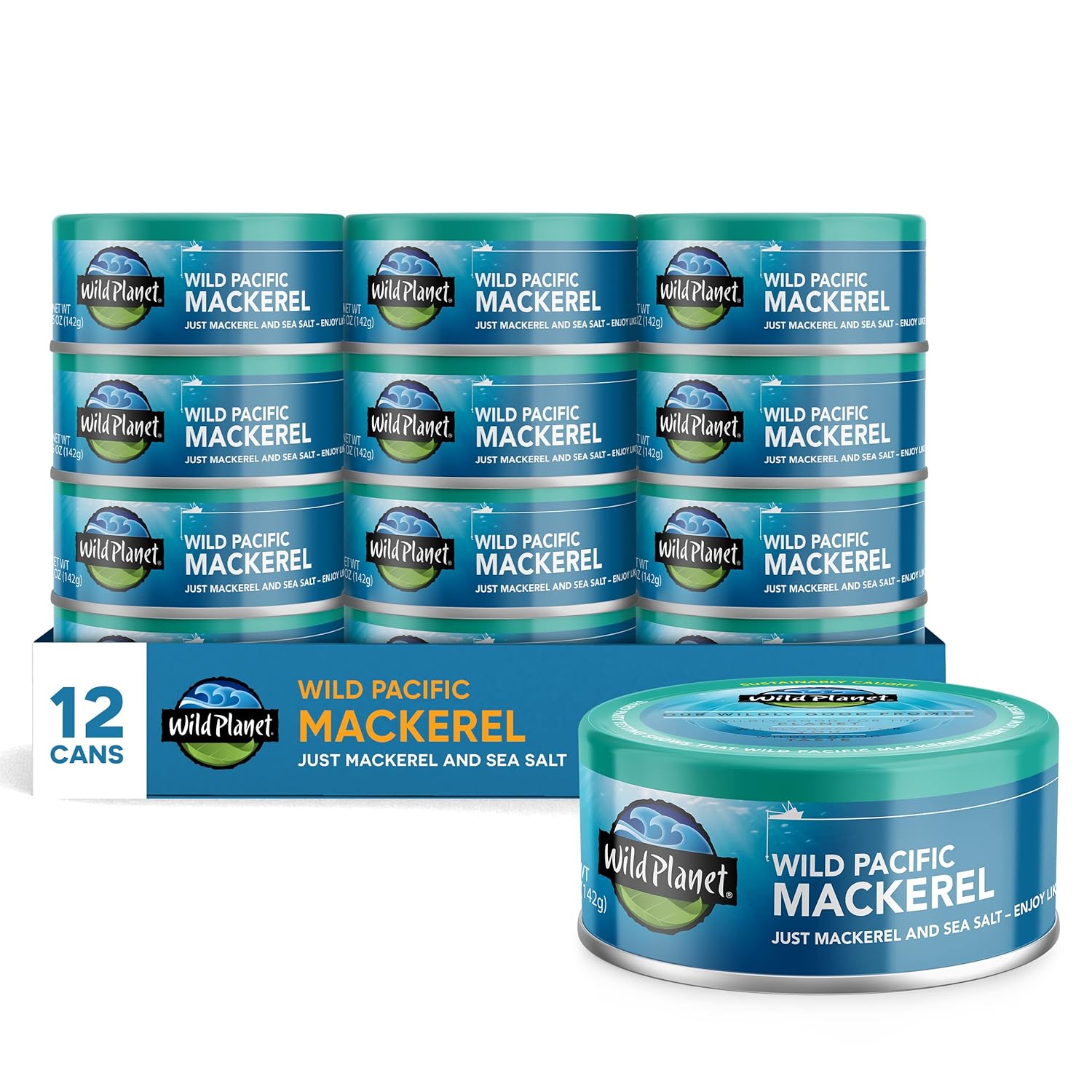 Wild Planet Wild Pacific Mackerel Fillets (SABA), Skin-On & Boneless, Delicious & Sustainable, Tinned Fish, 5 oz, (Pack of 12)