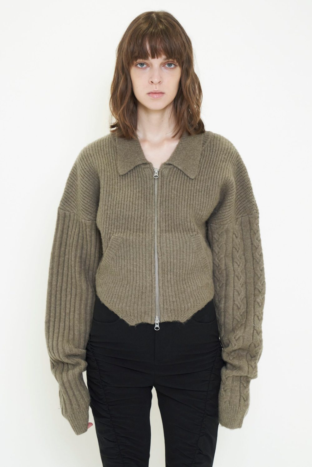 CUTTING DOUBLE ZIP KNIT CARDIGAN / BROWN