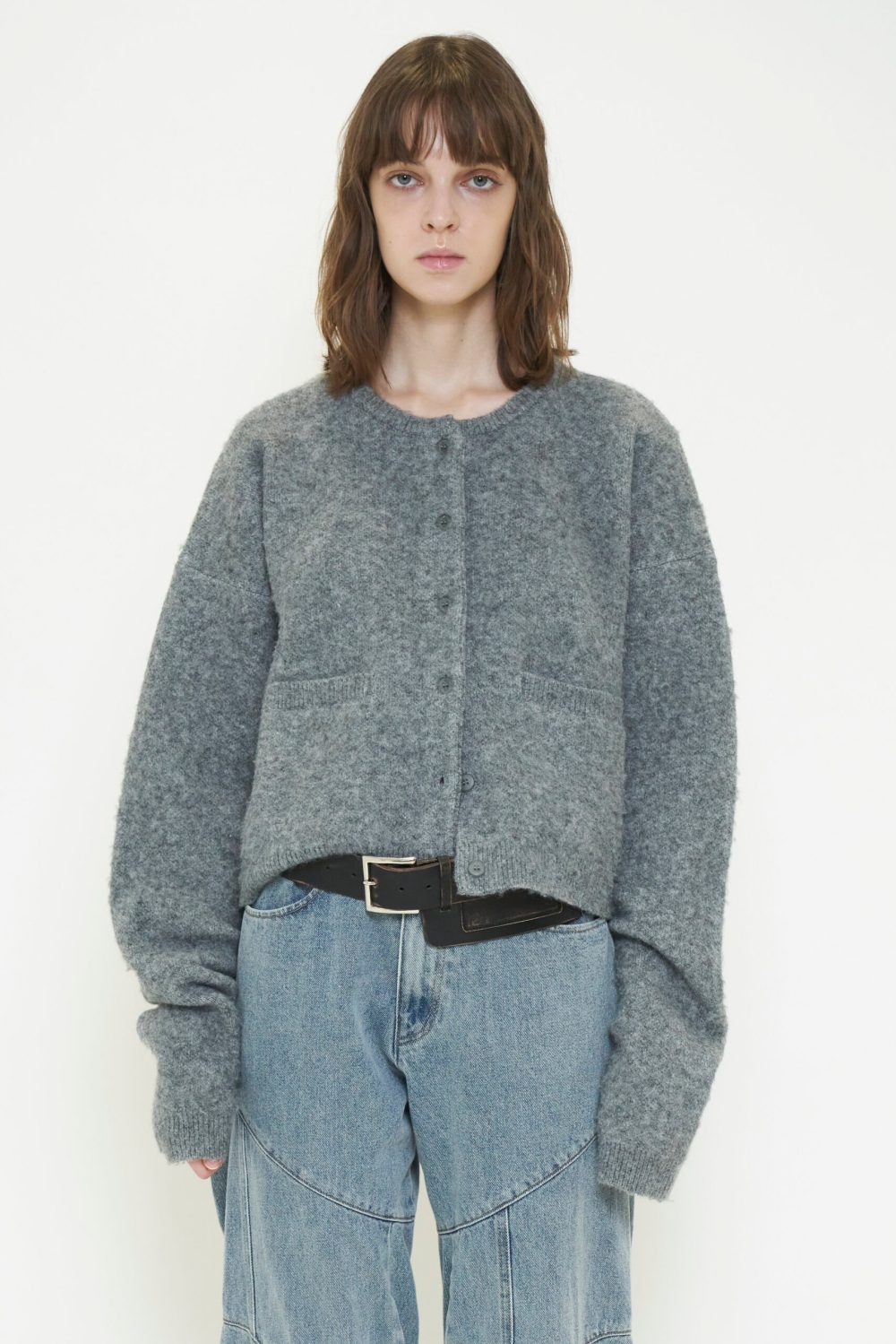 ASYMMETRIC COLOR KNIT CARDIGAN / GRAY