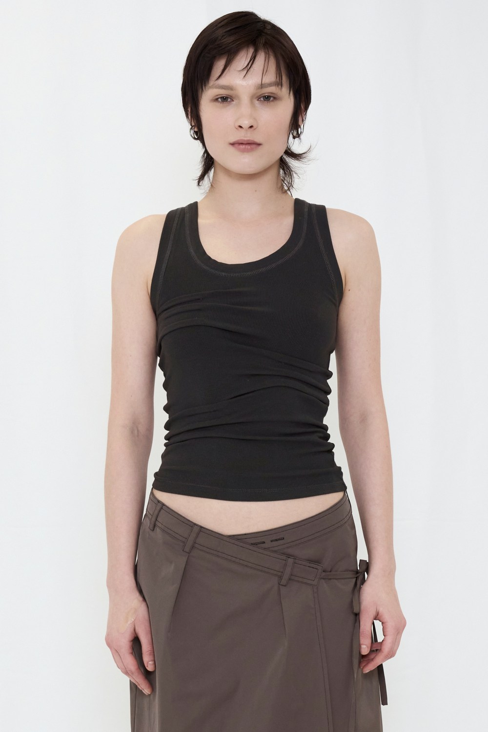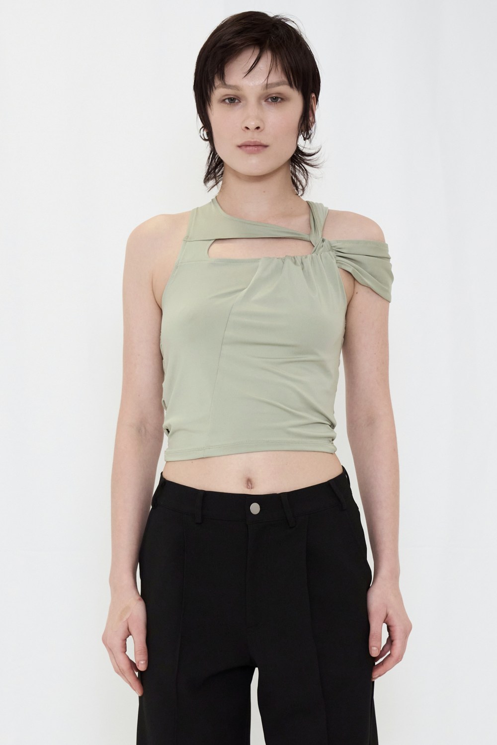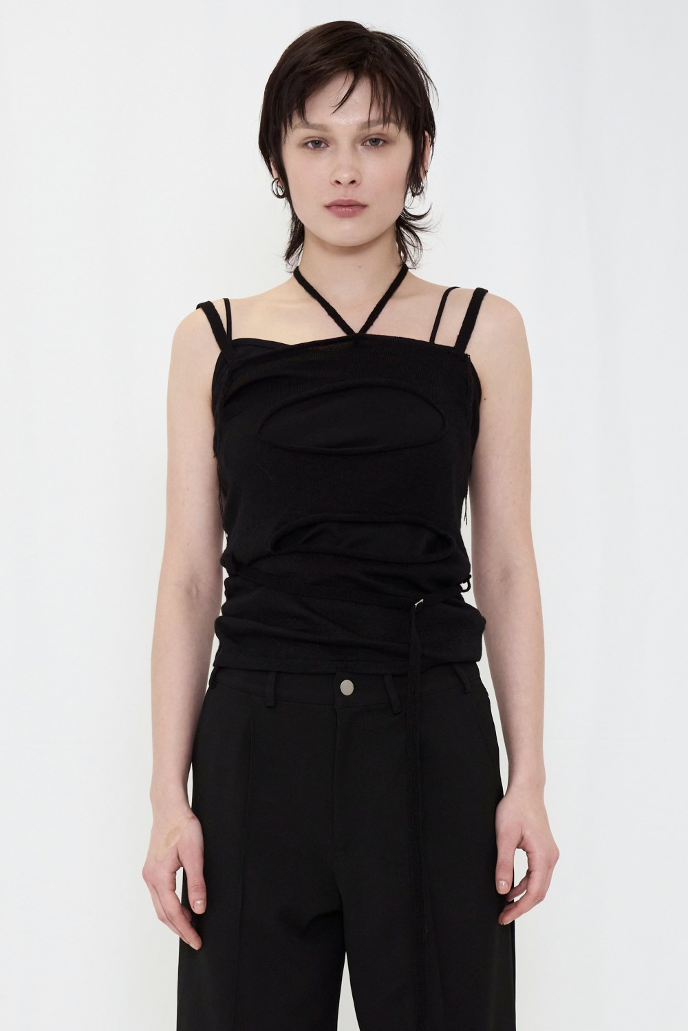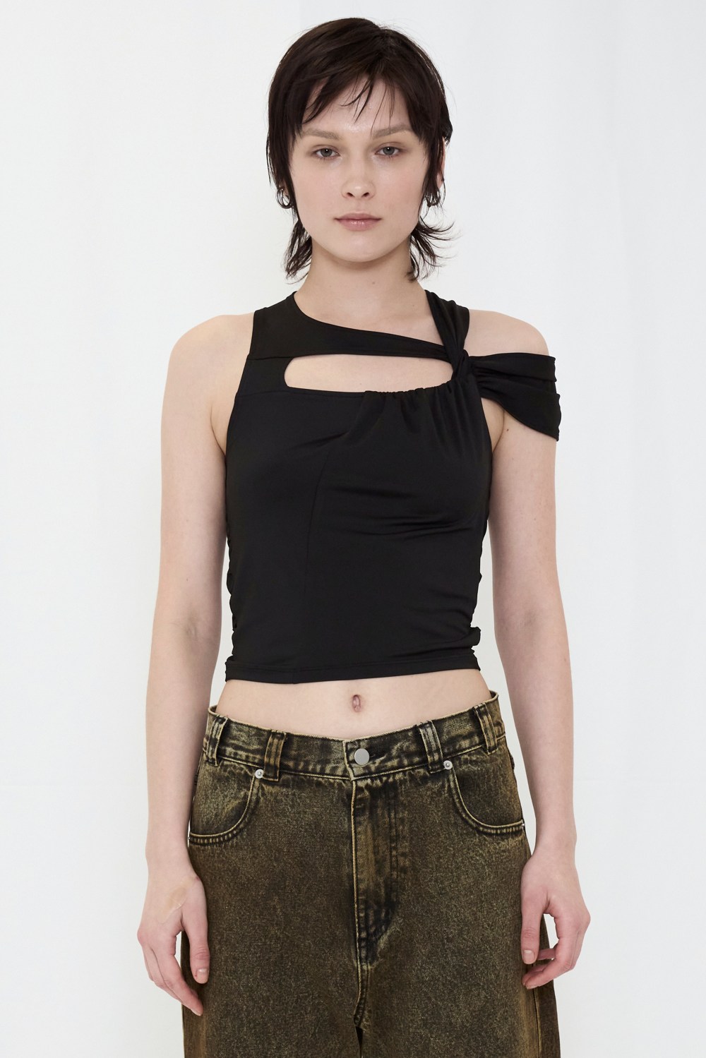 CUT OUT LONG SLEEVE TOP / CHARCOAL