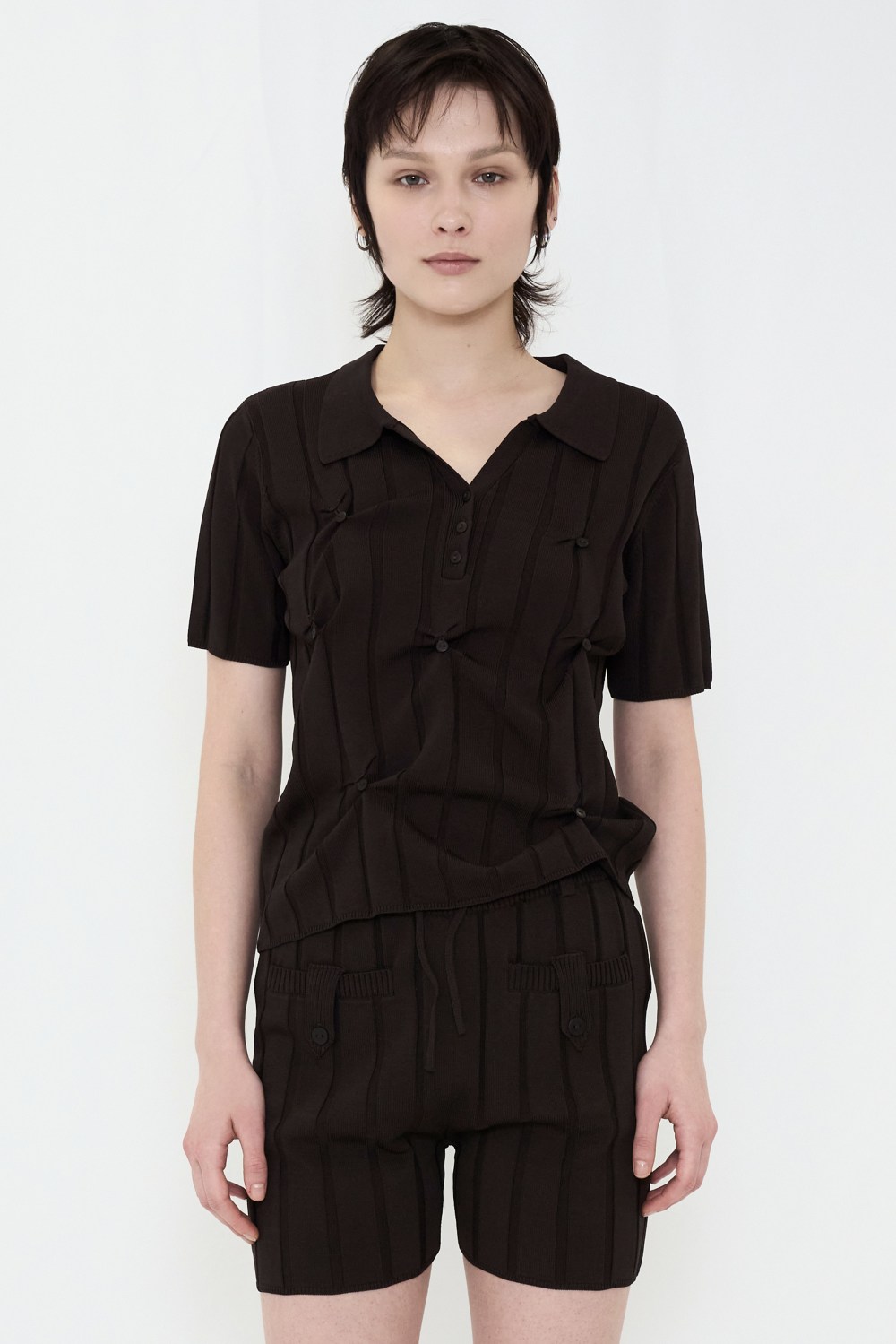SMOOTH KNIT POLO SHIRT / CHARCOAL