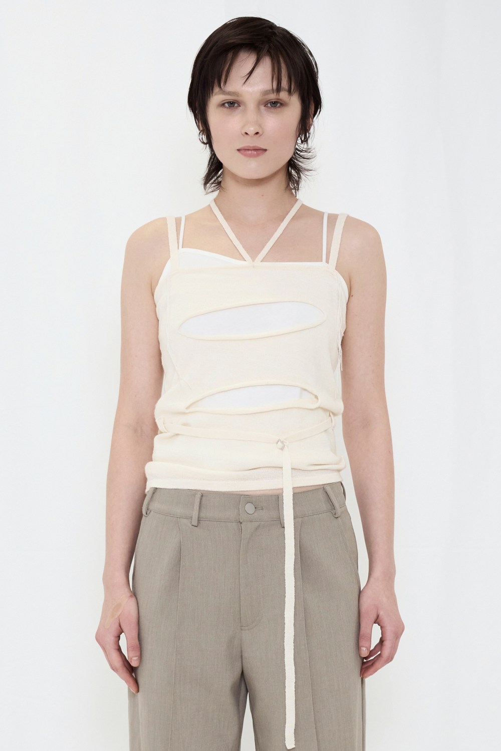 CUTTING DOUBLE ZIP KNIT CARDIGAN / IVORY