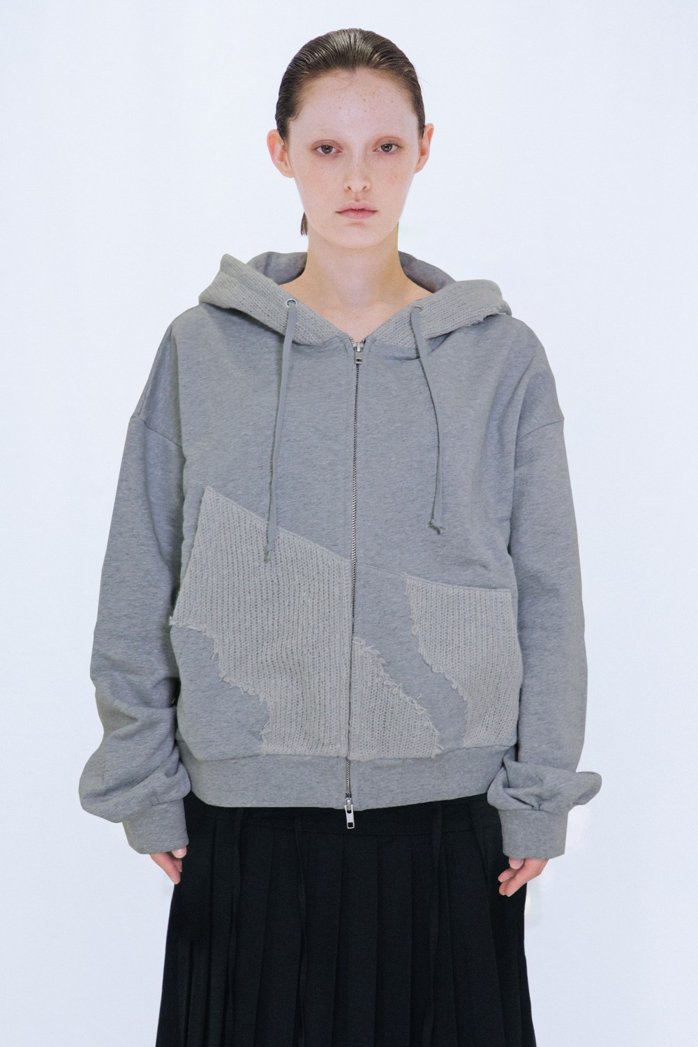 DOUBLE ZIP KNIT HOODIE / GRAY